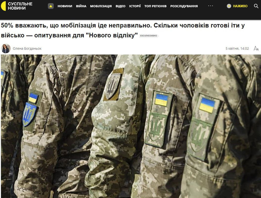 Вот тебе и нэнька! 63% украинских мужчин призывного возраста не хотят вступать в армию.