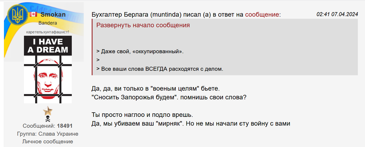 Как признался Smokan - бандеровцы целенаправленно убивают обычных мирных людей. Что ставит вопрос об их, бандеровцев, тотальном уничтожении.