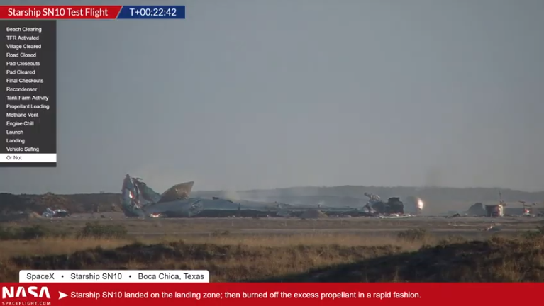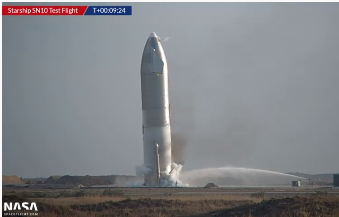 "Спустя всего несколько дней после того, как SN10 завершил первую, хотя и трудную, посадку прототипа Starship, SN11 готовится к развертыванию на стартовой площадке для своей собственной попытки. Достигается постепенный прогресс в тестовых полетах с еще одной настройкой последовательности посадки, которая должна быть реализована на основе данных, полученных от SN10. Между тем, первый прототип Super Heavy продолжает штабелирование, в то время как детали для Starship SN20 устанавливаются на производственной площадке.
