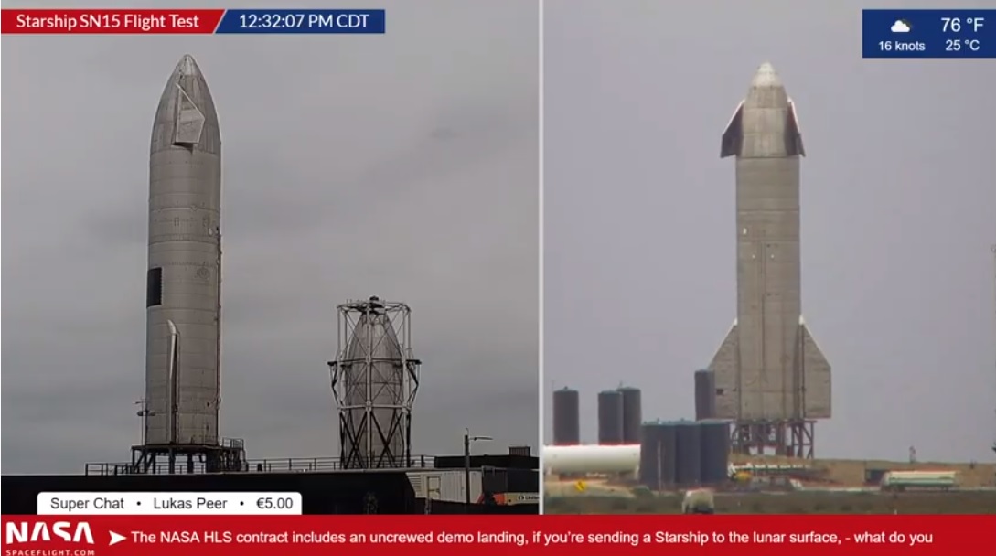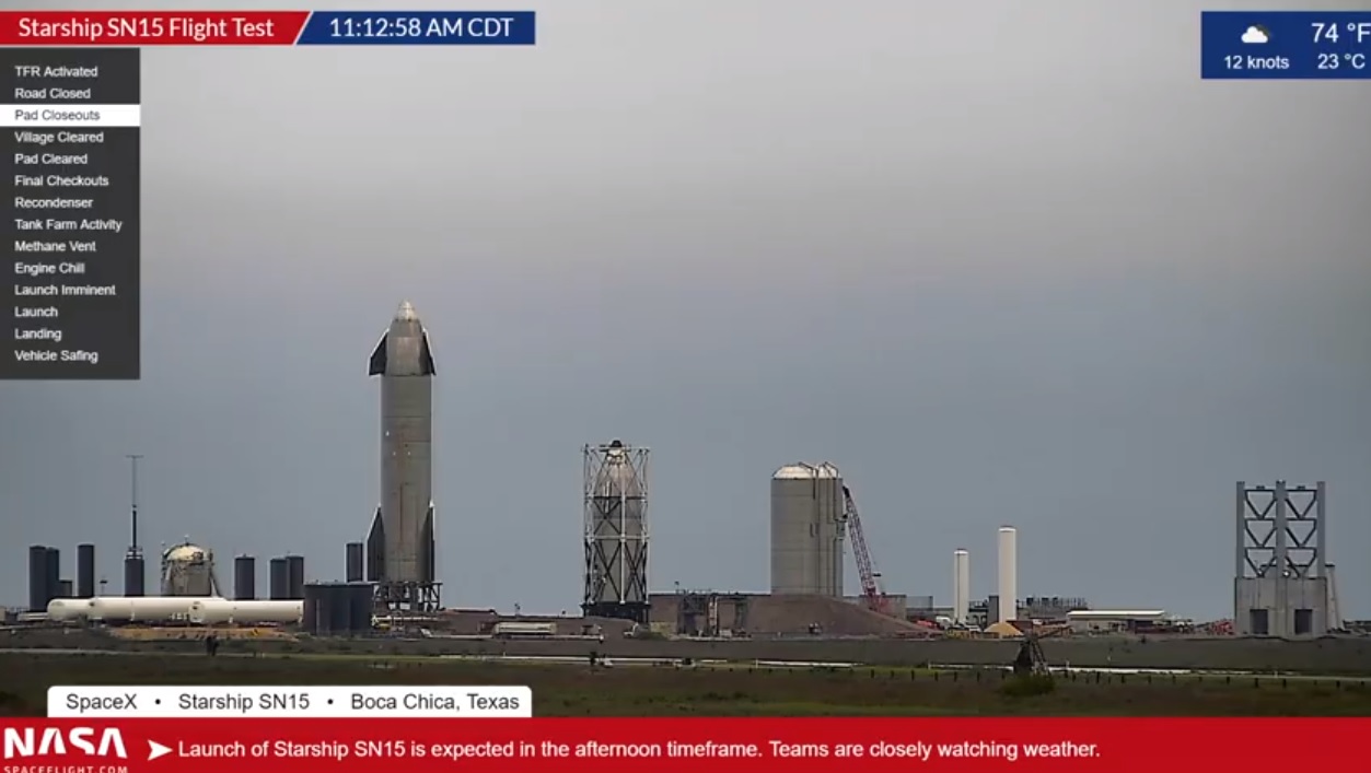 Несмотря на существенное отставание от оптимистичных первоначальных целей всего через неделю или две после того, как ракета перекатилась с завода на стартовую площадку, модернизированный прототип Starship с серийным номером 15 (SN15), оснащенный «сотнями улучшений», запустил свои три двигателя Raptor на несколько секунд. около 17:00 CDT в понедельник, 26 апреля. Также модернизированные двигатели ракеты, казалось, работали нормально, и SpaceX в конечном итоге закрыла вечерние испытания на несколько часов раньше."