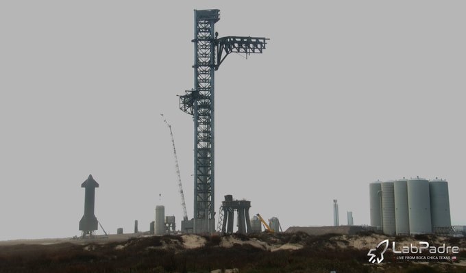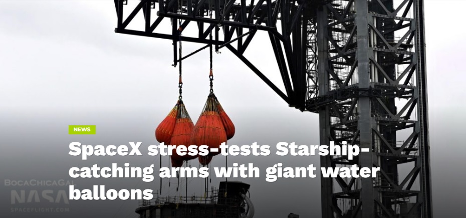 SpaceX начала тестировать ракето-ловящие руки/рычаги Starbase Пусковой Башни с балластом, чтобы имитировать вес Starship и Super Heavy.