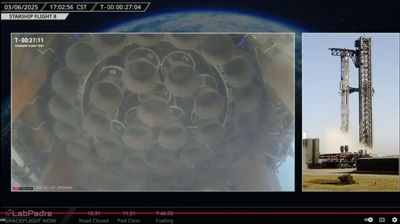 Восьмой испытательный полет космического корабля Starship компании SpaceX начнется в понедельник, 3 марта, в 18:30. восточноевропейское время (23:30 по Гринвичу)