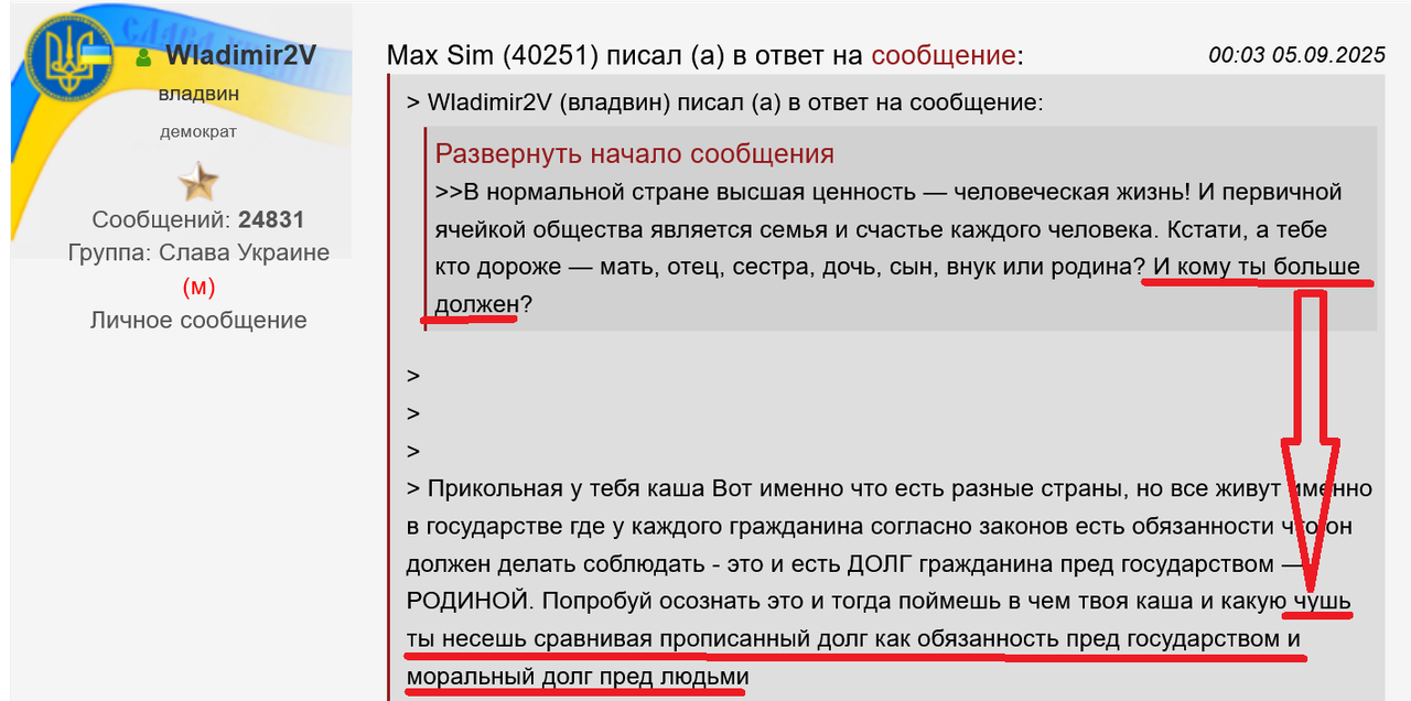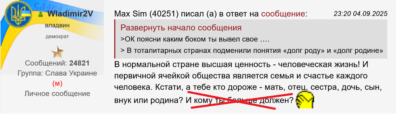 що так сольешься приглотив что в цицивлизовоанных странах долг пред родиной это прежде всего защищать свой народ и его интересы... но вам это не понять ведь к украине это не относится