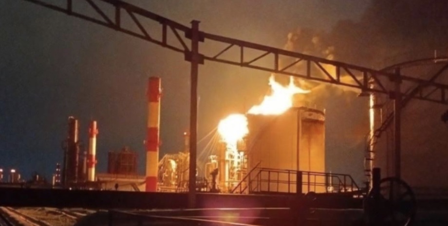«В результате атаки дронов на Рязанский НПЗ предприятие может потерять 16% мощностей. На месте попадания загорелась установка, которая занимается первичной переработкой нефти.»