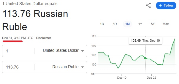 Волевым решением Путин запретил Центро Банку поднимать учётную ставку с 21% до 23%. Зато Рубль подскочил до 114 за доллар.