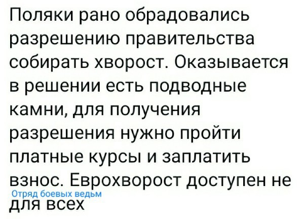 > Полякам разрешили собирать хворост, но только платно и после обучения > Жителям Польши разрешили собирать хворост, но только за деньги и после прохождения обучения