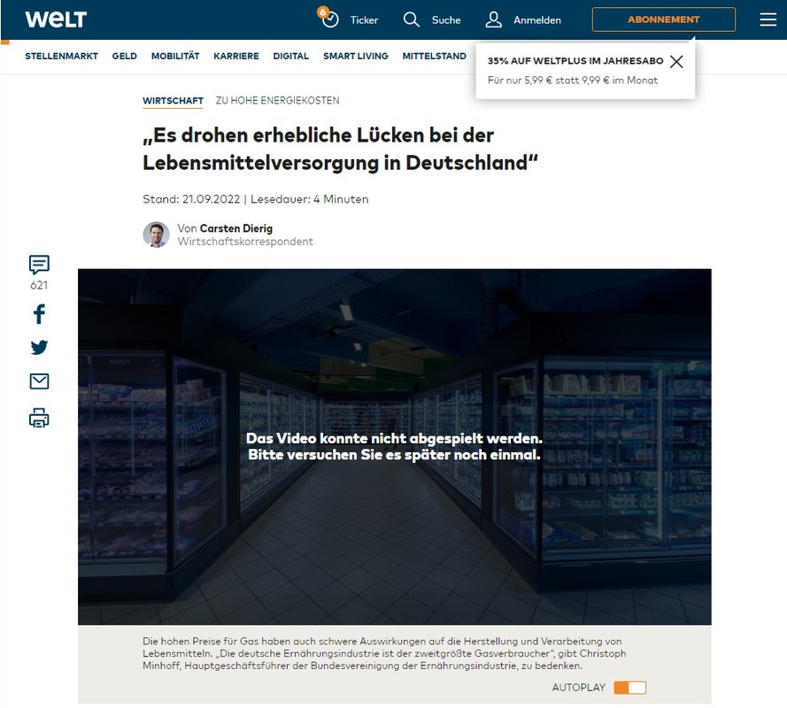 Die Welt: „Es drohen erhebliche Lücken bei der Lebensmittelversorgung in Deutschland“