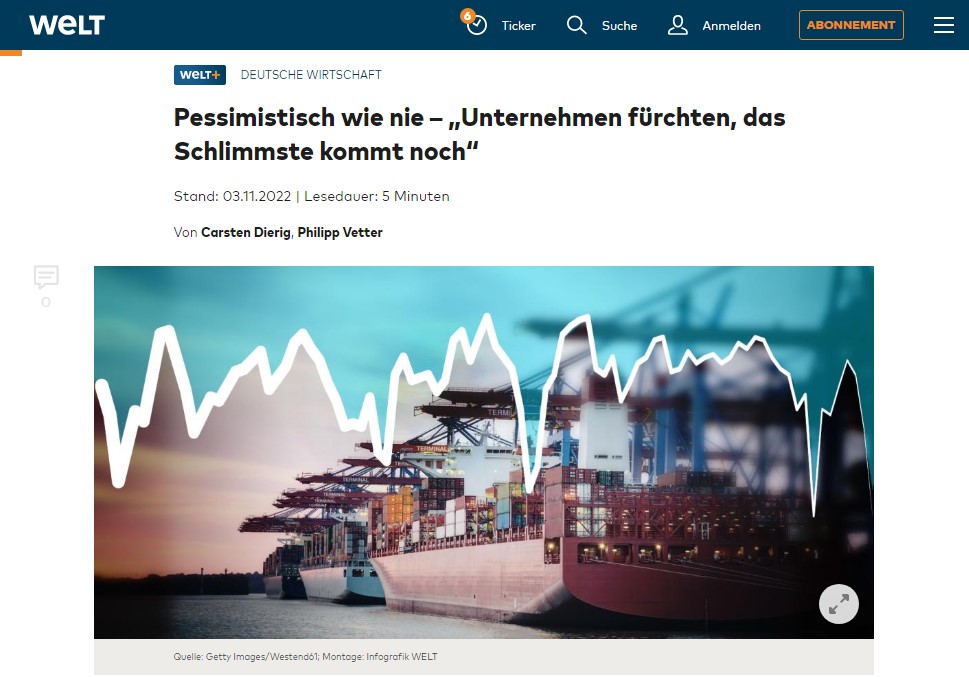 Die Welt: «худшее ещё впереди» — немецкие компании смотрят в будущее с небывалым пессимизмом Stand: 03.11.2022