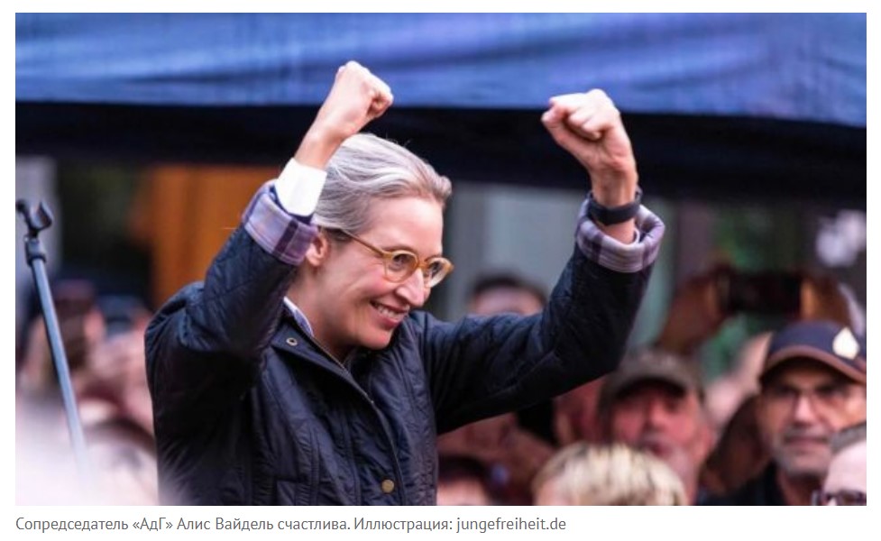 Крупнейшая оппозиционная партия «Альтернатива для Германии» («АдГ») достигает рекордного уровня ещё в двух землях ФРГ, причём западных — Рейнланд-Пфальц и Баден-Вюртемберг.