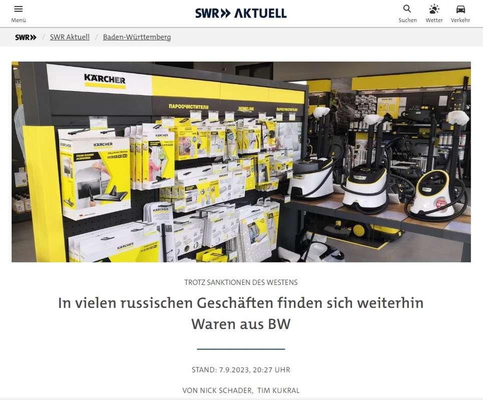 Швабские лидеры мирового рынка Stihl и Kärcher неоднократно осуждали российскую спецоперацию на Украине, а также заявляли о своём намерении «уйти» из России. Однако в Москве мало что говорит о том, что это произошло. В России существует множество магазинов этих промышленных компаний, только в Подмосковье их более двух десятков.