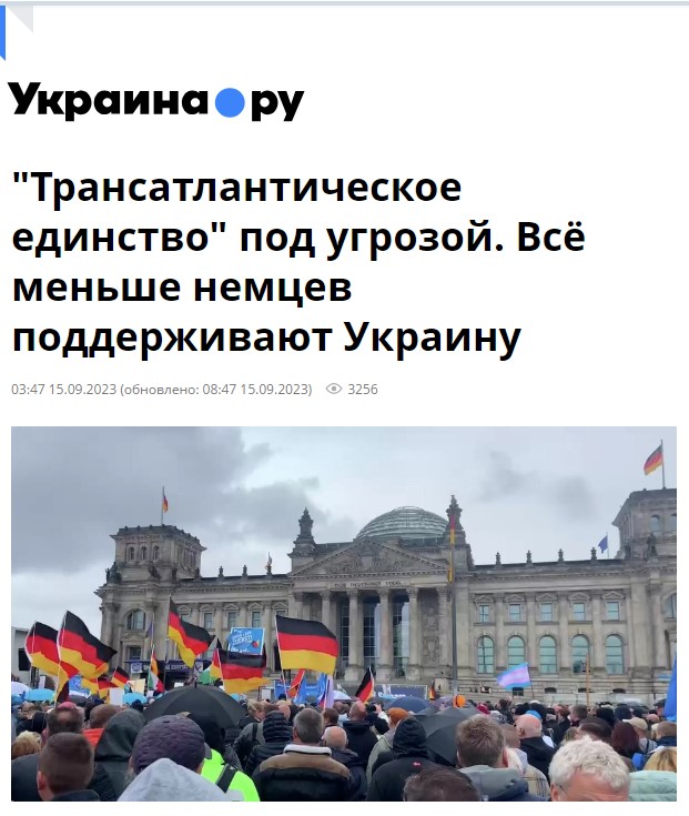 "Трансатлантическое единство" под угрозой. Всё меньше немцев поддерживают Украину 15.09.2023
