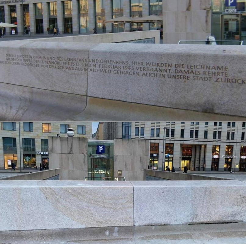 В немецком Дрездене странным образом исчезла памятная надпись с каменной стелы, посвященной бомбардировкам города англо-американской авиацией в годы Второй Мировой войны.