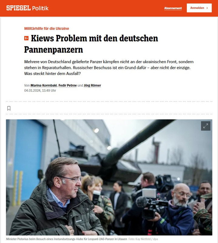 Spiegel: Немецкие танки созданы для парадов и учений, а не для реальных боевых действий 04.01.2024
