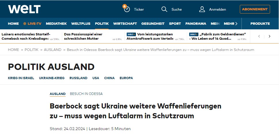 "Оставьте её там навсегда": Прятки Бербок в одесском бомбоубежище рассмешили немцев Читатели Welt ополчились на Бербок за её визит в одесское бомбоубежище Stand: 24.02.2024