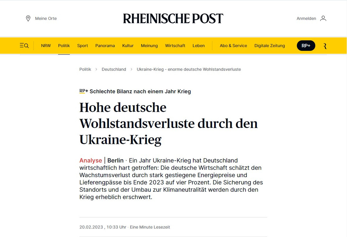Rheinische Post: Германия потеряла 100 млрд евро из-за спецоперации России 20.02.2023
