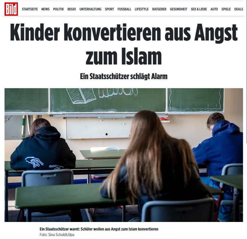 А теперь сотрудник службы госбезопасности бьет тревогу в интервью газете BILD: "Ситуация в школах еще более драматична". Он рассказывает: "Все больше родителей немецких детей обращаются в консультационные центры, потому что их дети-христиане желают принять ислам, чтобы не казаться изгоями в школе".
