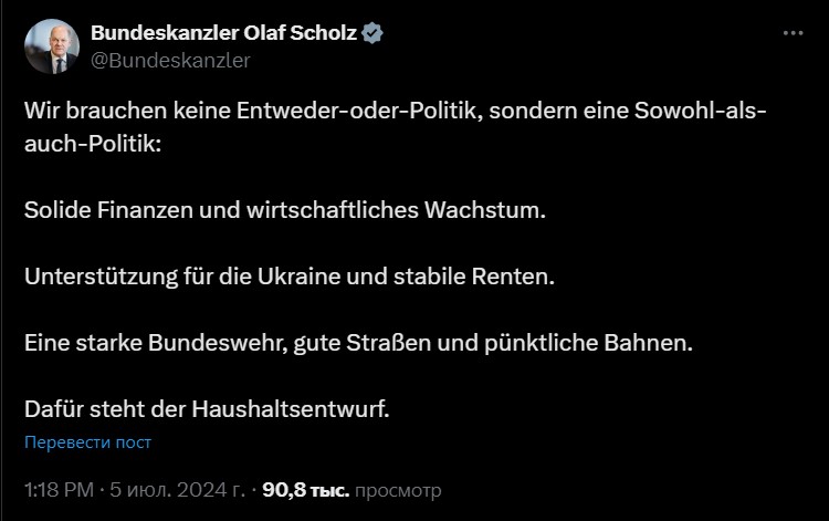 Пользователи социальной сети X гневно отреагировали на слова канцлера Германии Олафа Шольца о выделении денег Украине из бюджета страны.