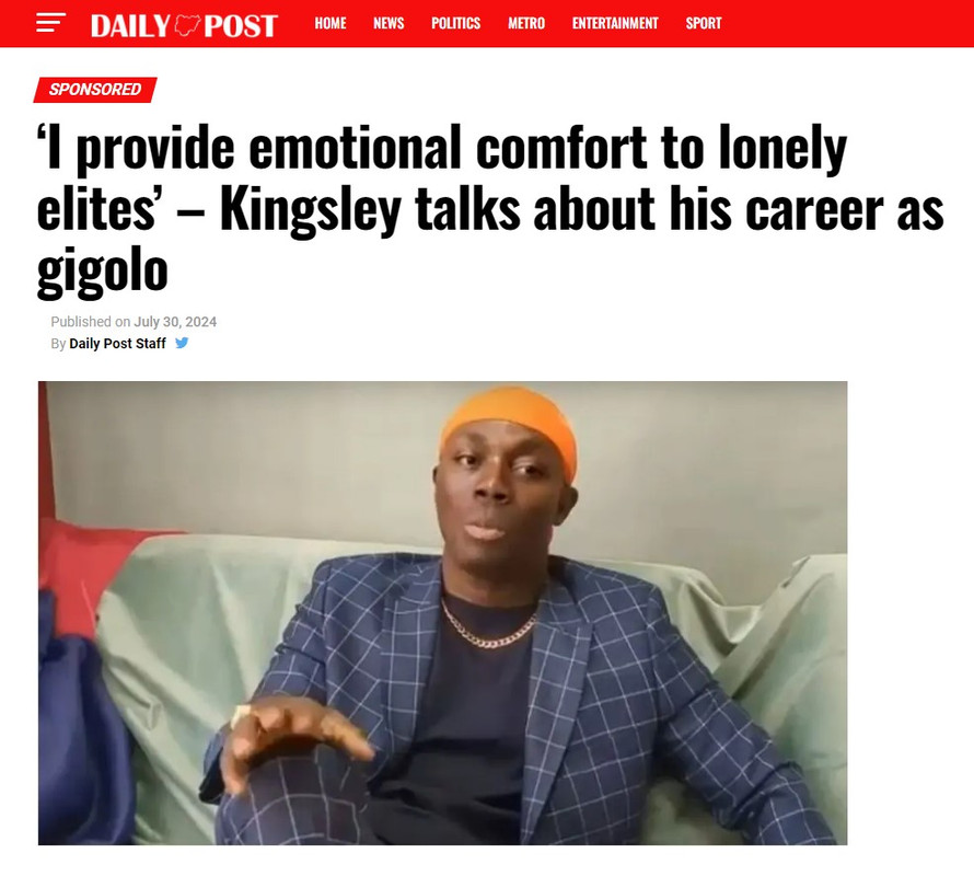 «Меня зовут Кингсли и я работаю жиголо уже пять лет», - именно так начинается «исповедь» чернокожего парня в яркой оранжевой шапке и клетчатом пиджаке.