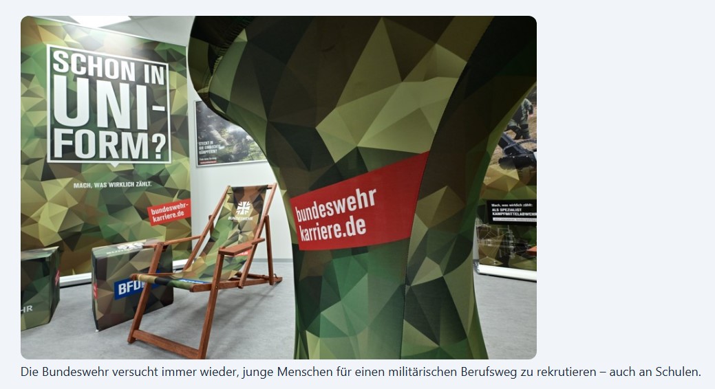 Протесты учащихся против выступлений бундесвера в школах — не единичные случаи по всей стране. В Лейпциге, например, подростков мобилизовали перед военной лекцией в учебном заведении; Там 16-летнему подростку угрожали отчислением из школы. Прокуратура г. Фрайбурга подчеркивает презумпцию невиновности и отсылает к предстоящему основному слушанию для разъяснения. Пока что обвинение в оскорблении остается.