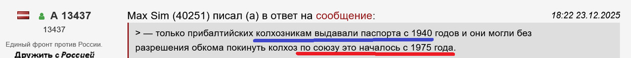 Ты опять облажался и своей ссылкой лишь подтвердив мое. Внимательно читай что тебе пишу не мог колхозник в СССР покинуть колхоз так как у него не было паспорта и чтоб выехать куда нибудь ему надо было разрешение обкома без него его арестовывали как бомжа, а вашим выдавали паспорта поэтому они и бежали Факт остается фактом при большевика вы прибалты жили лучше всех других республик.