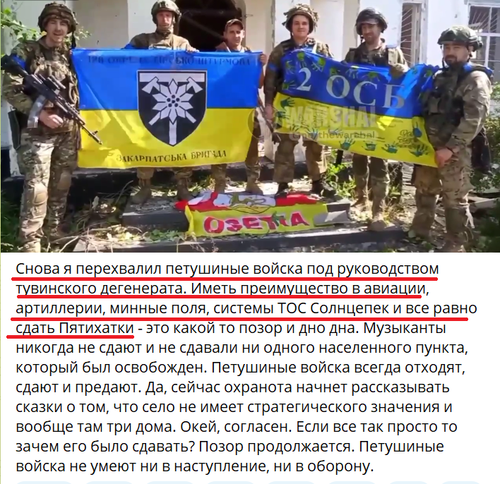У меня другая информация. Есть видео что наши в селе, есть видео что в селе просто на улицах и посадках много трупов ваших солдат, я так понимаю это эти осетинцы.