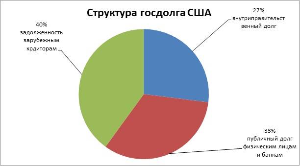 Внутренний долг — задолженность перед государственными учреждениями, например пенсионными фондами. Публичный долг — обязательства по ценным бумагам, которые находятся в собственности частных лиц, компаний, Федеральной резервной системы США, а также правительств штатов и зарубежных государств.