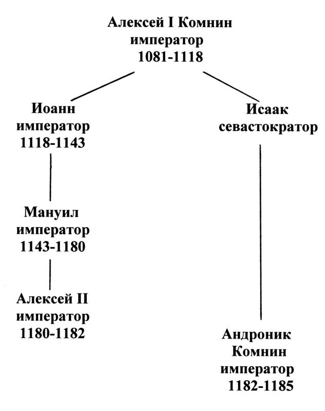 Последним императором этой династии и был Андроник Комнин, убитый в 1185 году. Династическое дерево: