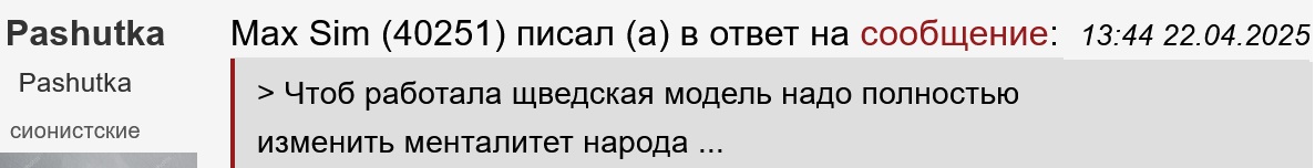 >> Чтоб работала щведская модель надо полностью изменить менталитет народа …
