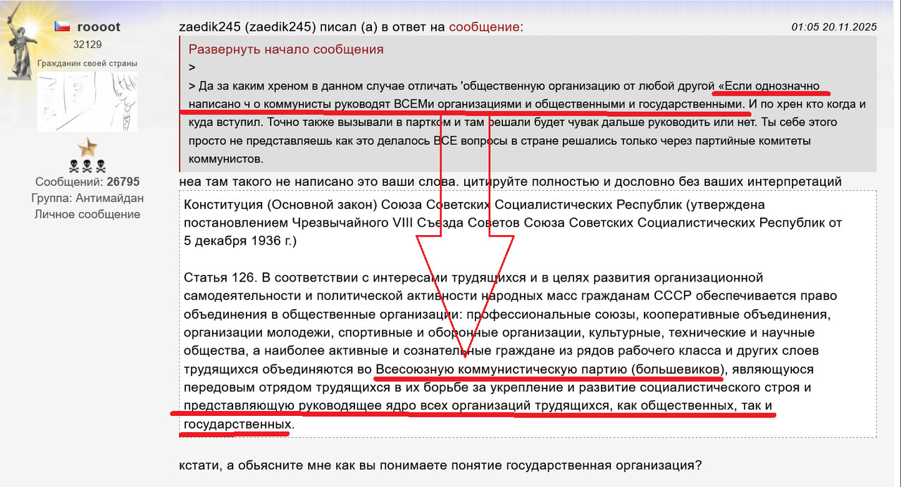 там броня не прошибешь я Валерий Батадзе (ninapeta) давал даже ссылки на устав РКП(б), устав ВКП(б) и конституцию СССР 1936 года все отскакивало как об стену горох