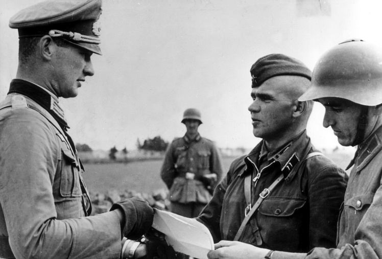 русский фашист и немецкий фашист отдают честь на параде: