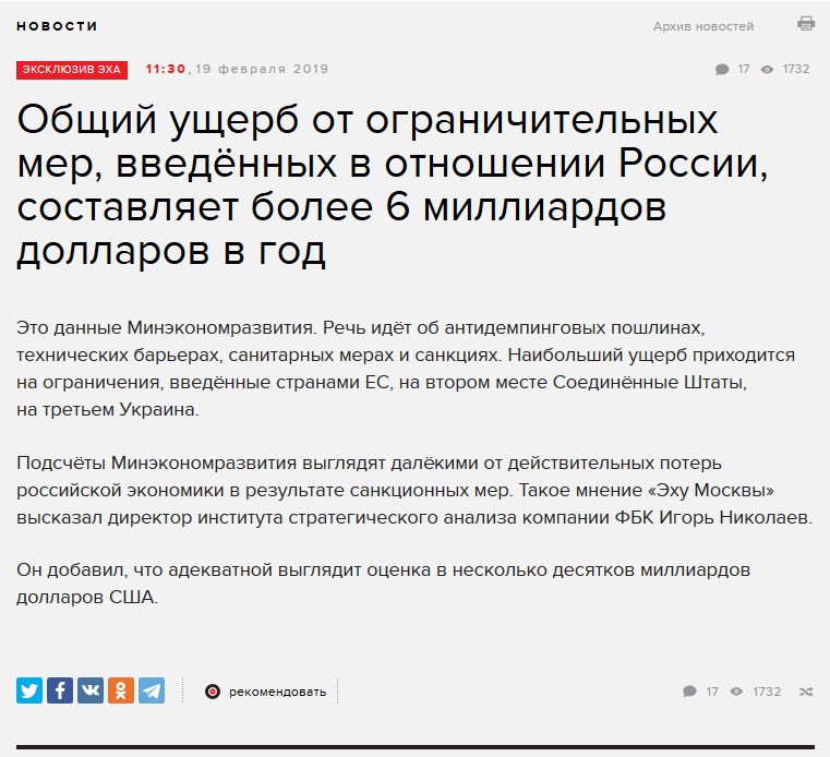 Обнулилась мантра российской пропаганды, что санкции России на пользу!