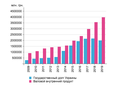 Цифры долга в грн с привязкой к ВВП