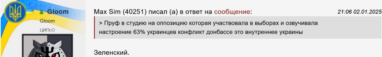 Уже писал твое бла бла типа цитаты непонятно откуда взятые не катят… докажи что не выдумал сам пруф — ссылку в студию с что зеленский озвучивал настроение 63% украинцев конфликт на донбассе это внутреннее украины дело
