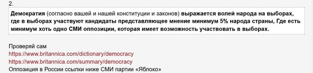 > С другой стороны, кому я объясняю — человеку, который не жил при демократии и не знает что это.