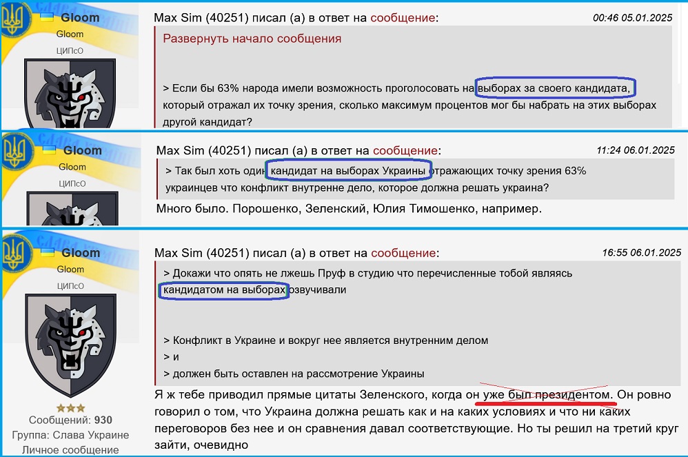 Я ж тебе приводил прямые цитаты Зеленского, когда он уже был президентом. Он ровно говорил о том, что Украина должна решать как и на каких условиях и что ни каких переговоров без нее и он сравнения давал соответствующие. Но ты решил на третий круг зайти, очевидно