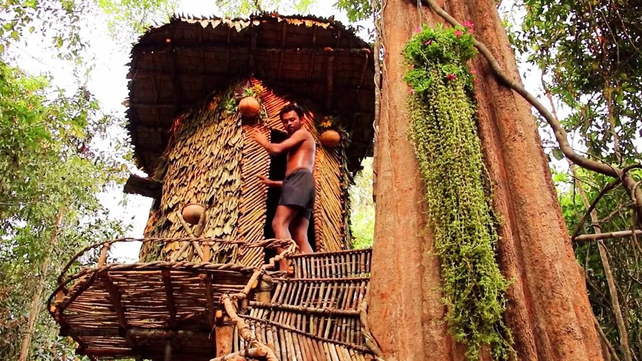 Строительство дома на дереве в джунглях Таиланда. — YouTube