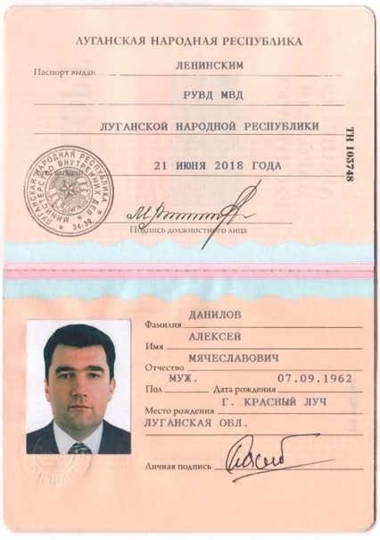 Алексей Данилов, занимающее должность секретаря СНБО Украины в 2018 году получило паспорт гражданина ЛНР. Об этом сообщила экс-начальник отдела миграционной службы МВД ЛНР в Луганске Марианна Василевская. По ее словам украинский чиновник оформил луганский паспорт для того, чтобы легально продать свою недвижимость в городе. Решение вопроса с паспортом ЛНР обошлось Данилову в 2 тыс. долларов.