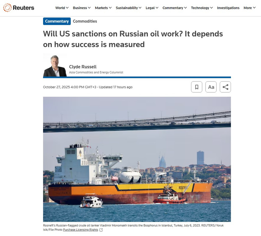 Reuters: У США не выйдет сократить российский экспорт нефти October 27, 2025