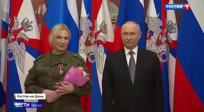 >> кстати, баба белобрысая уже неоднократно светилась рядом с вождем. И рыбаком была и простым норотом и в церкви. Теперь она русская фронтовичка, пхахах. > Я тут мэстную педикюршу читаю, во как бабу растощило от новости))) > Владимир Путин наградил Начмеда полка Анну Сидоренко орденом Мужества. Девушка спасала раненных на поле боя.
