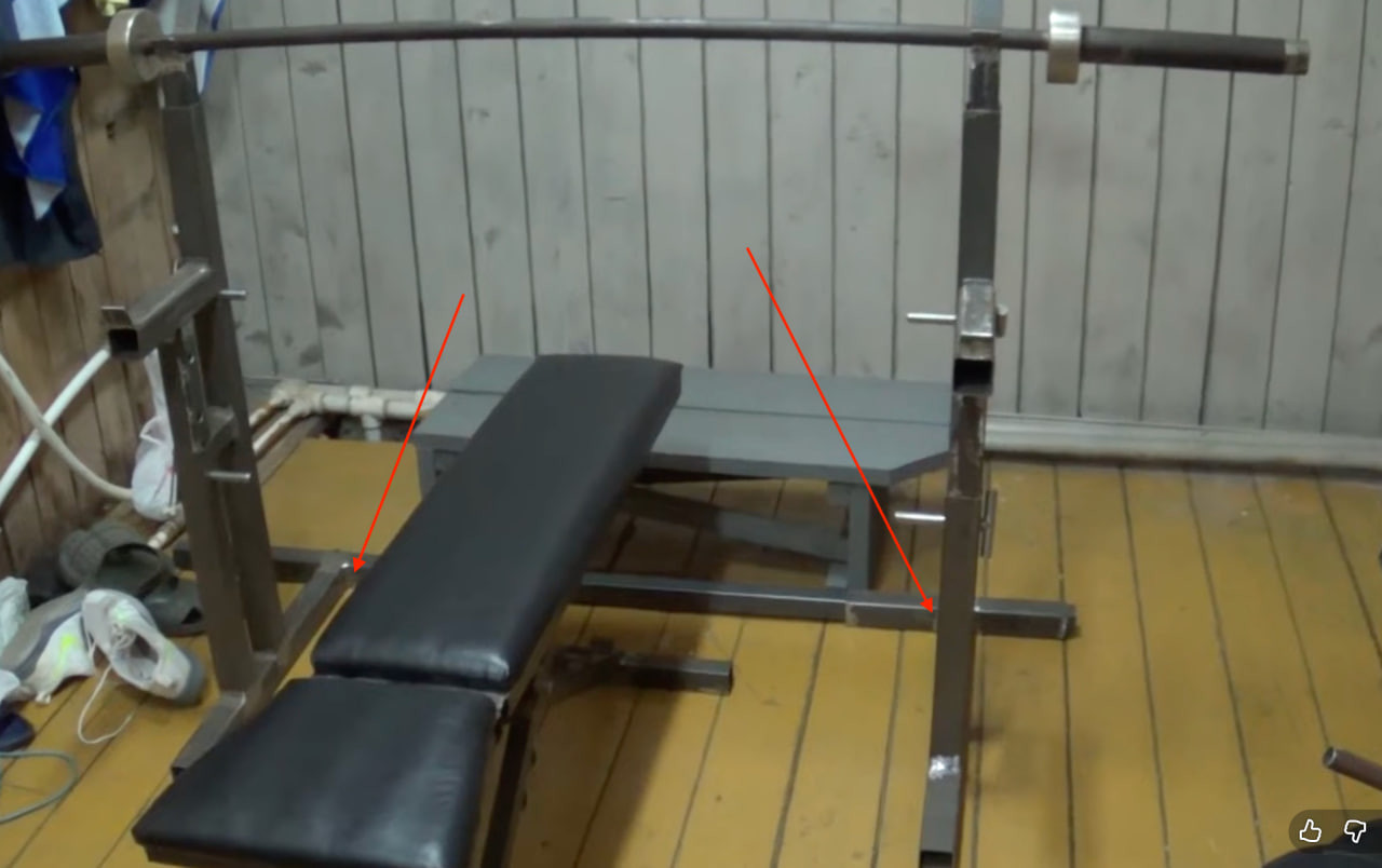 А вот это очень большая ошибка, когда так приварено, если что-то пойдет не так по сварке, под весом можно с такой скамьей просто "провалиться"