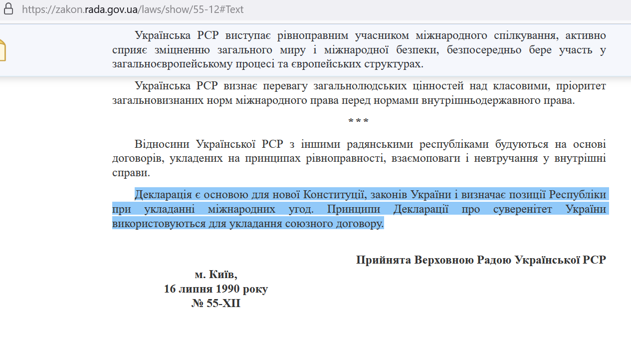 Тут ключевые слова про нейтральный статус в декларации о независимости Украины: