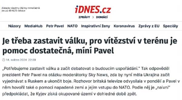 Президент Чехии Петр Павел призвал остановить войну на Украине и начать мирные переговоры, передает местное издание Idnes.