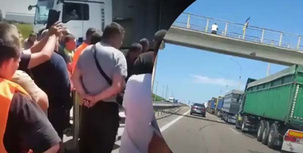 Дальнобойщики устроили акцию протеста на трассе Киев-Одесса. Они вывели на дорогу десятки фур, образовав там огромную пробку.