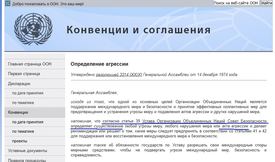 >> Поздно елозить черным по белому прописанно >> 1. Устав ООН статья 39 устанавливает агрессию СБ ООН