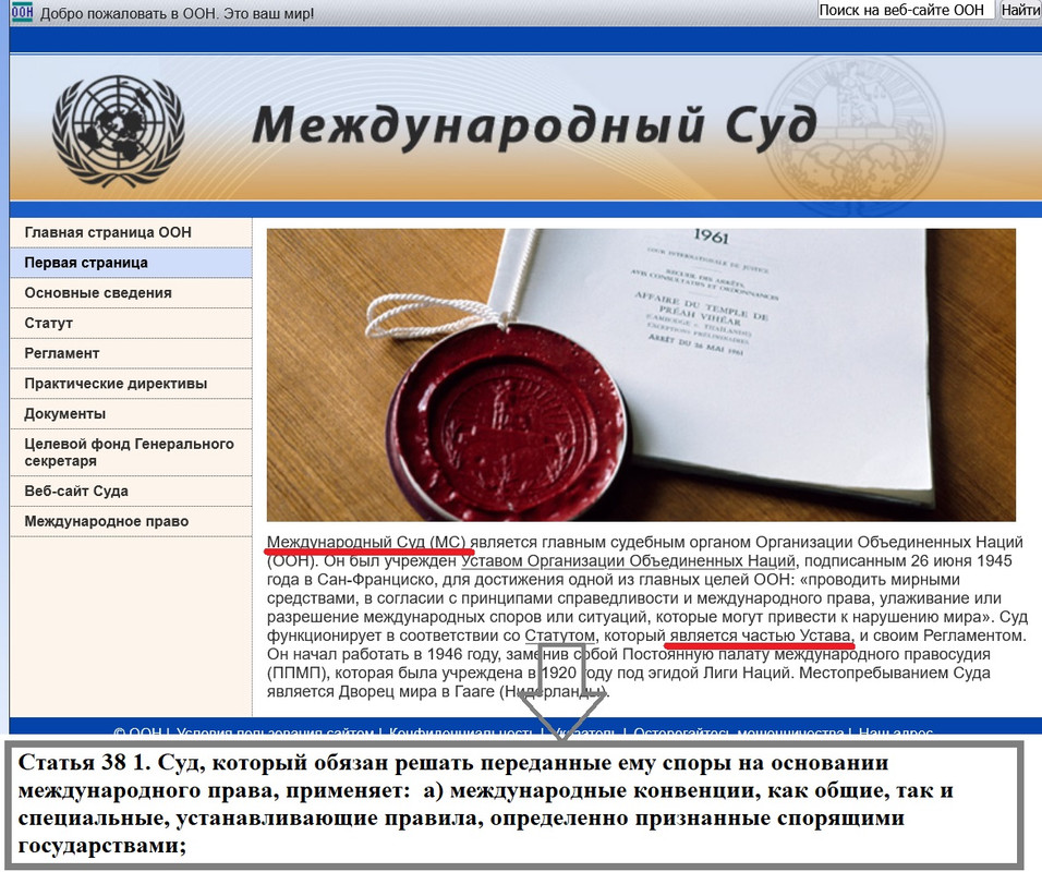 >>Так ведь прямо написано - МС может рассматривать дело лишь в том случае , если соответствующие государства определенным образом дали согласие на то, чтобы стать стороной разбирательства в Суде >>