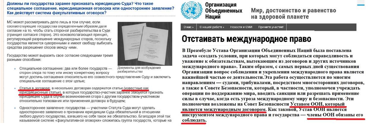>>>> Может хватит тупить уже. дал же выше ссылку пример… вы подали иск без нашего согласия и МС ООН решал уже рассматрвиать или нет… где сразу отмел ваши обвинения РФ в геноциде >>> >>> Статья в договоре: в нескольких договорах содержатся статьи (известные как юрисдикционные статьи), в которых государство-участник заранее обязуется признать юрисдикцию Суда в случае возникновения спора с другим государством-участником относительно толкования или применения договора в будущем;