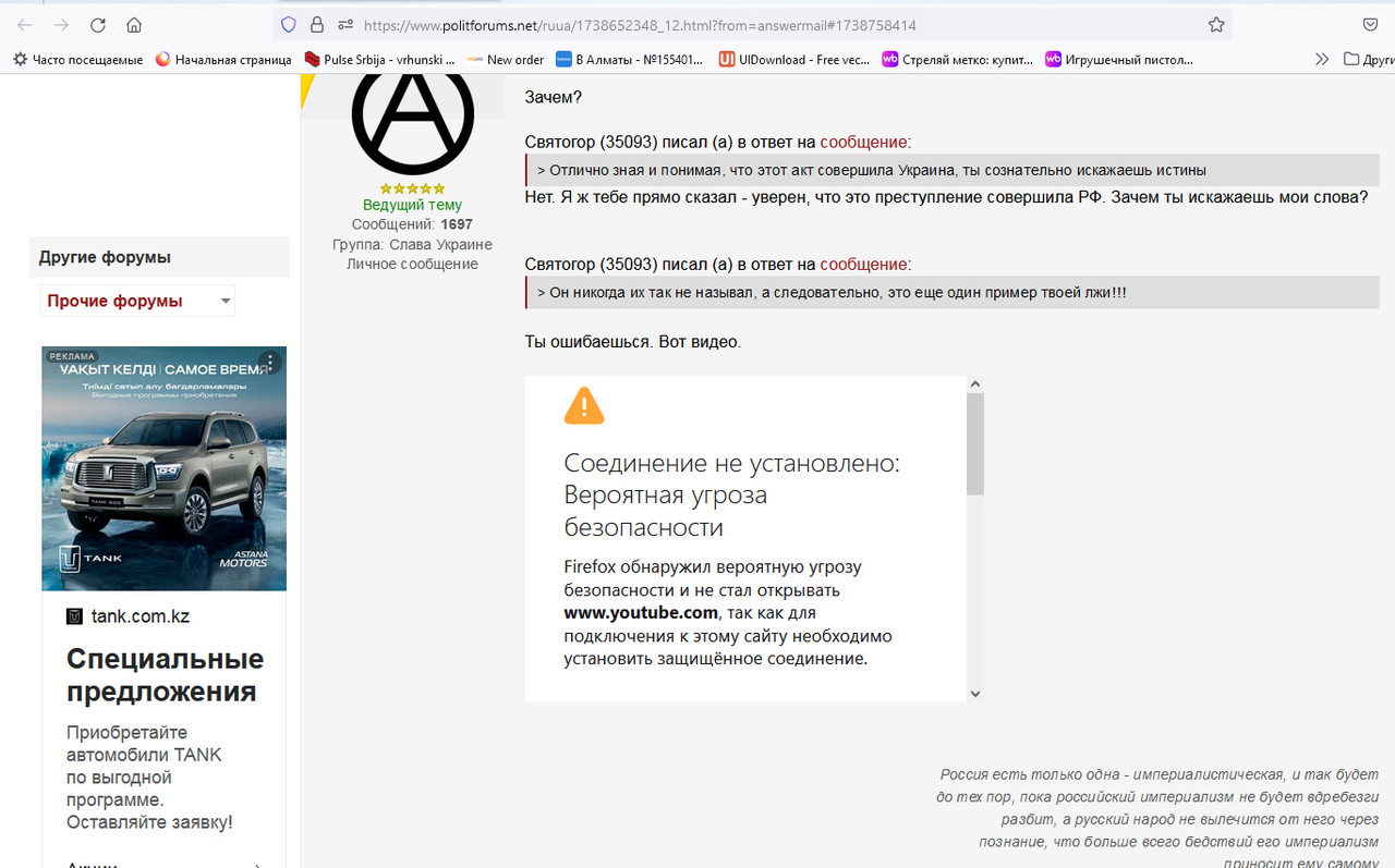 Но вообще, ставь ВПН. Много интересного от вас скрывают. А то живешь в информационном пузыре и несешь всякую чушь.