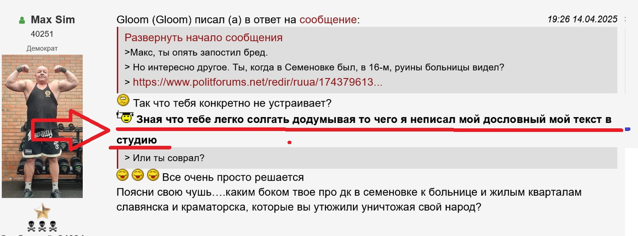 > Поясняй каким боком твое про дк в семеновке к руинам больницы и что вы с визгом слава уничтожали свой народ утюжа жилые кварталы славянска, краматорска?