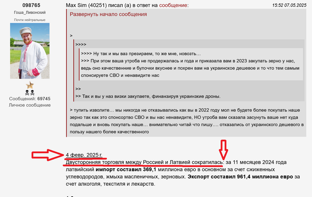 098765 (Гоша_Ливонский) выше дал данные за 2025 году все также покупаете наше зерно и похрен вам кровавое оно или нет .для вас вкусные булочки превыше всего ваш желудок правит вами