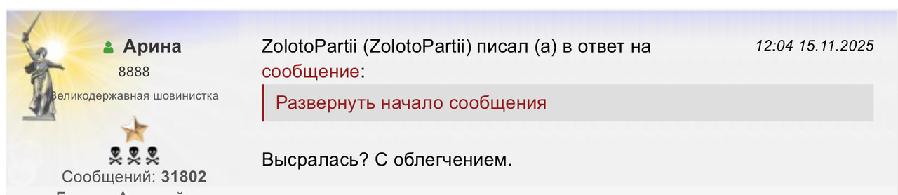 > > Это собирательный образ вашей "адекватности" > И да.. Невестка всралась.